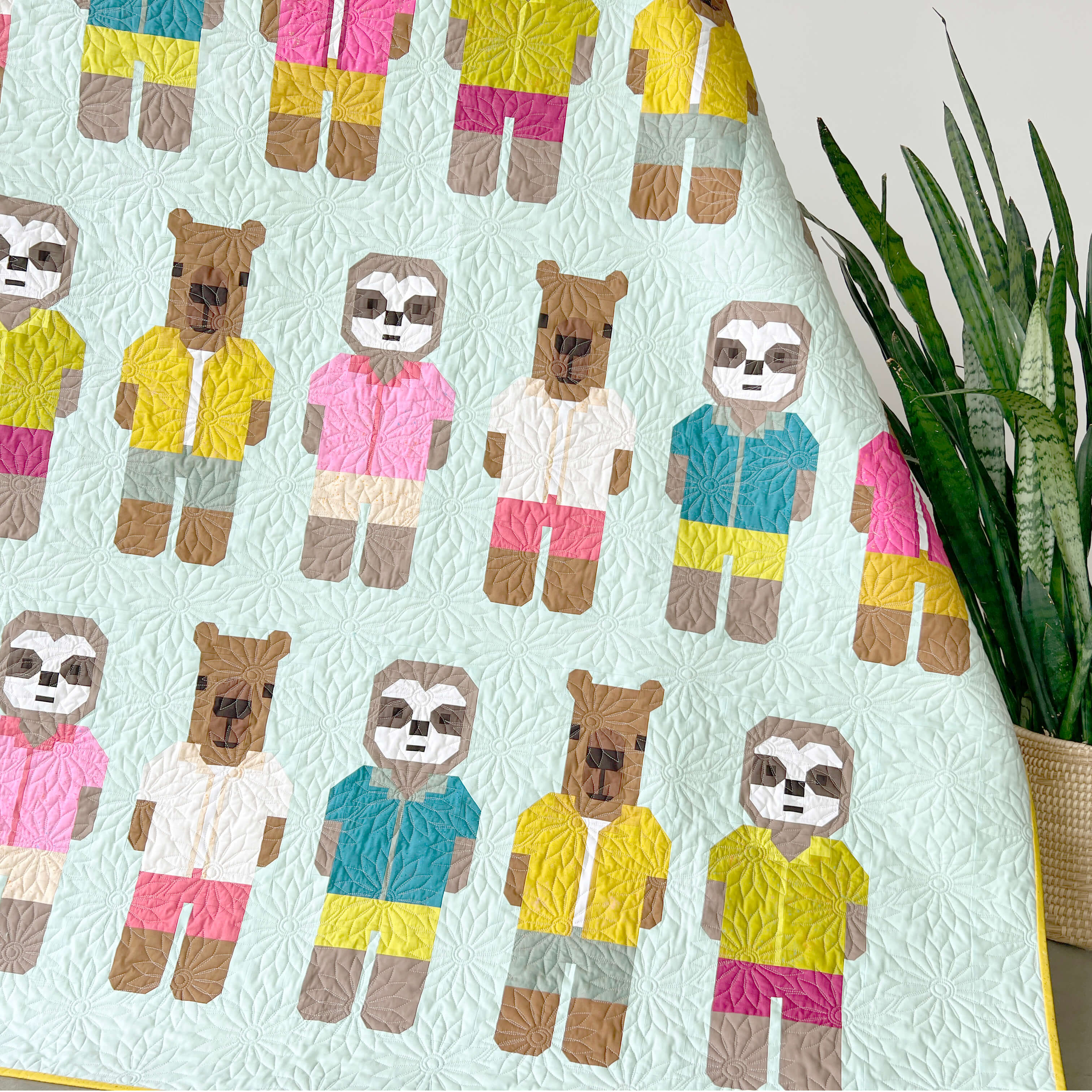 These capybaras and sloths are all dressed up in their vacation shirts and shorts! Piece them using conventional patchwork techniques. No templates or paper piecing!