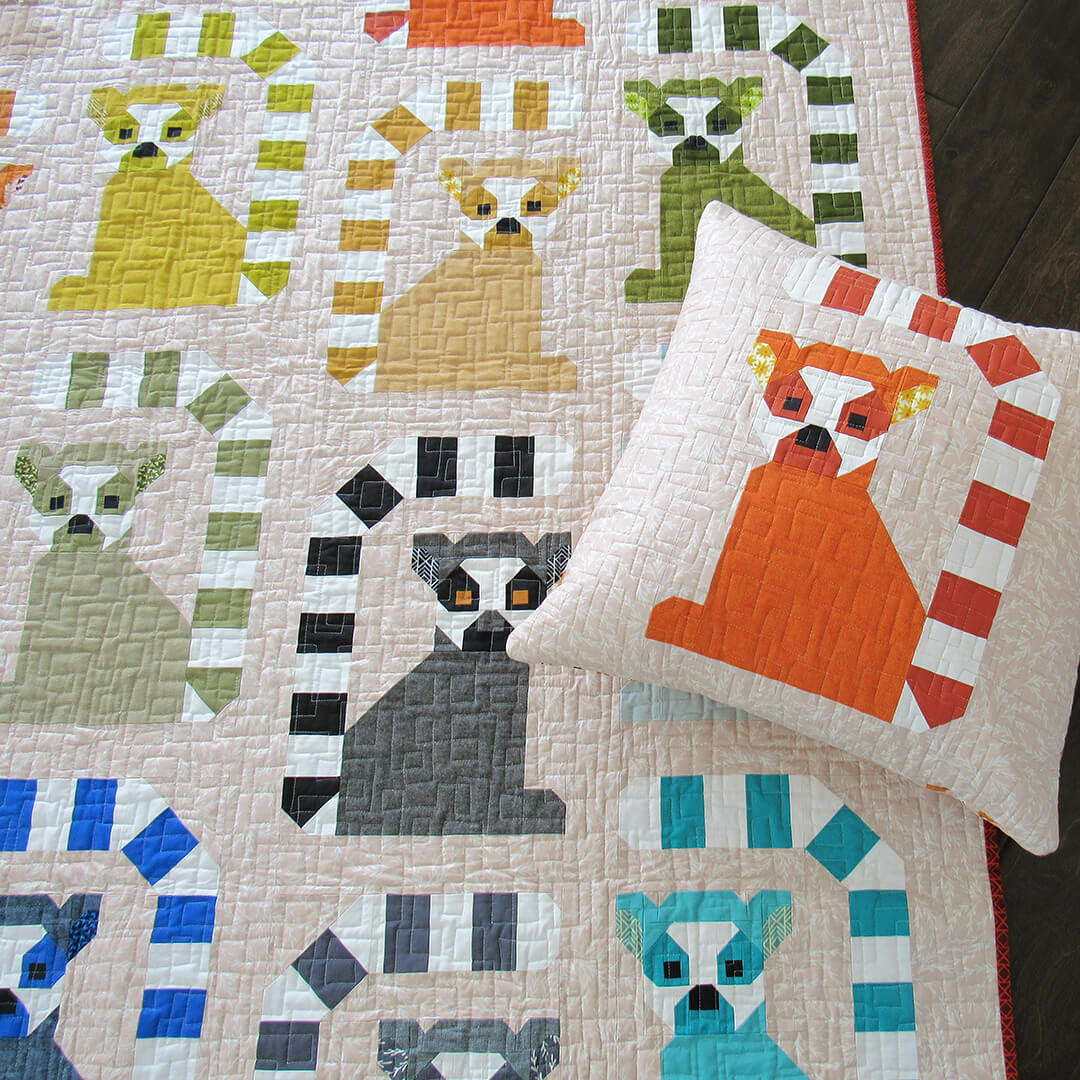 Piece these adorable lemurs and their stripey tails using precut fabric squares.