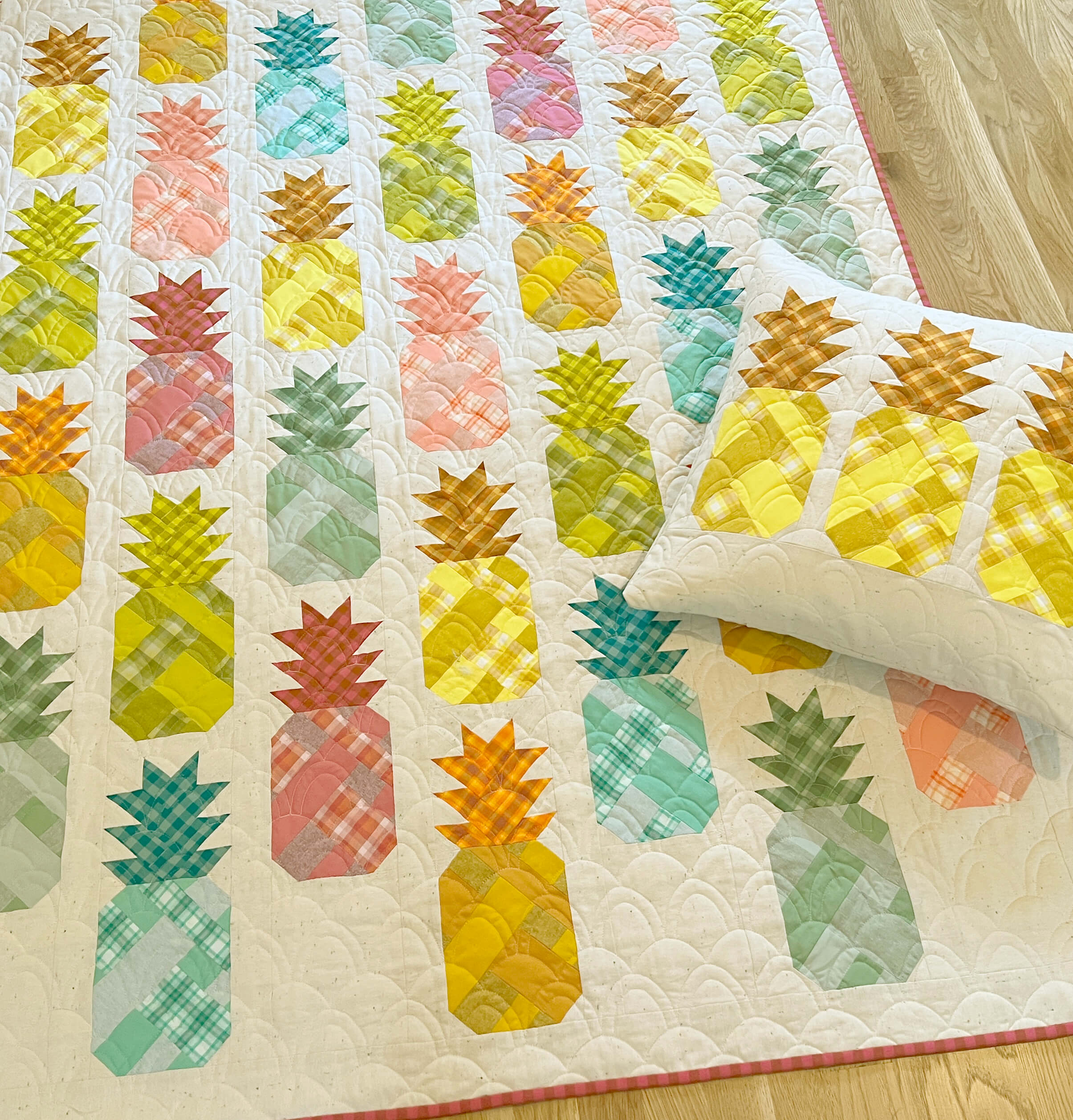 Use your favorite fat quarters or 10" x 10" squares to piece these sweet patchwork pineapples.