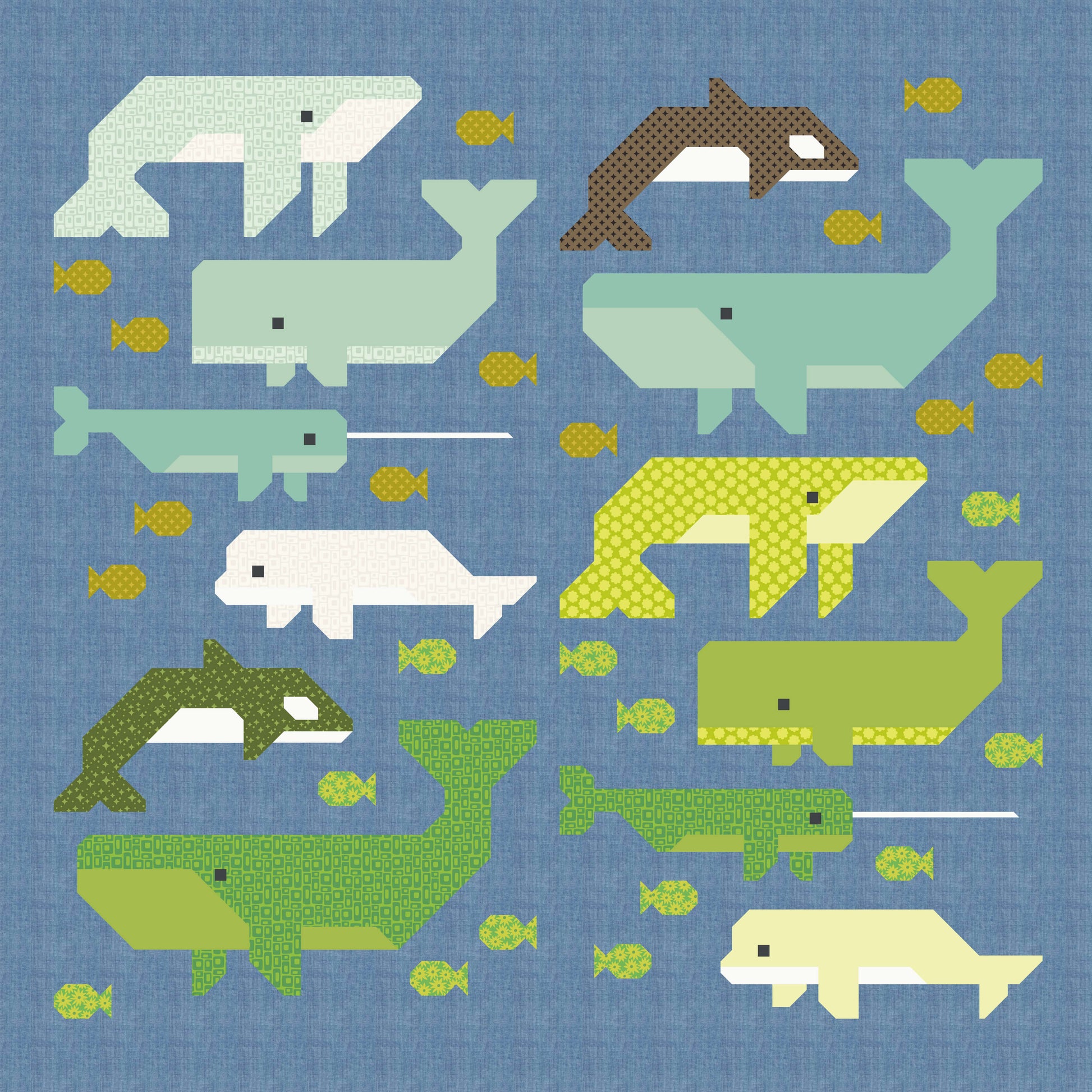 These sweet cetaceans and their fishy friends are ready to piece using a combination of fat eighths, fat quarters, and conventional patchwork techniques. No templates or paper piecing!